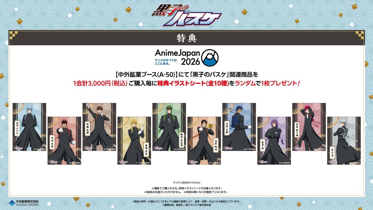 ・当日の完売情報は、中外鉱業ブースおよび中外鉱業イベント情報Xアカウント(@chugai_event)にてお知らせいたします。